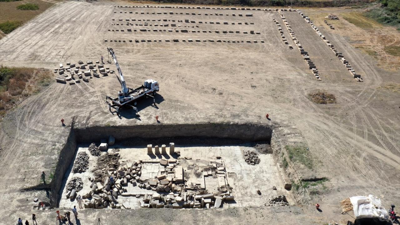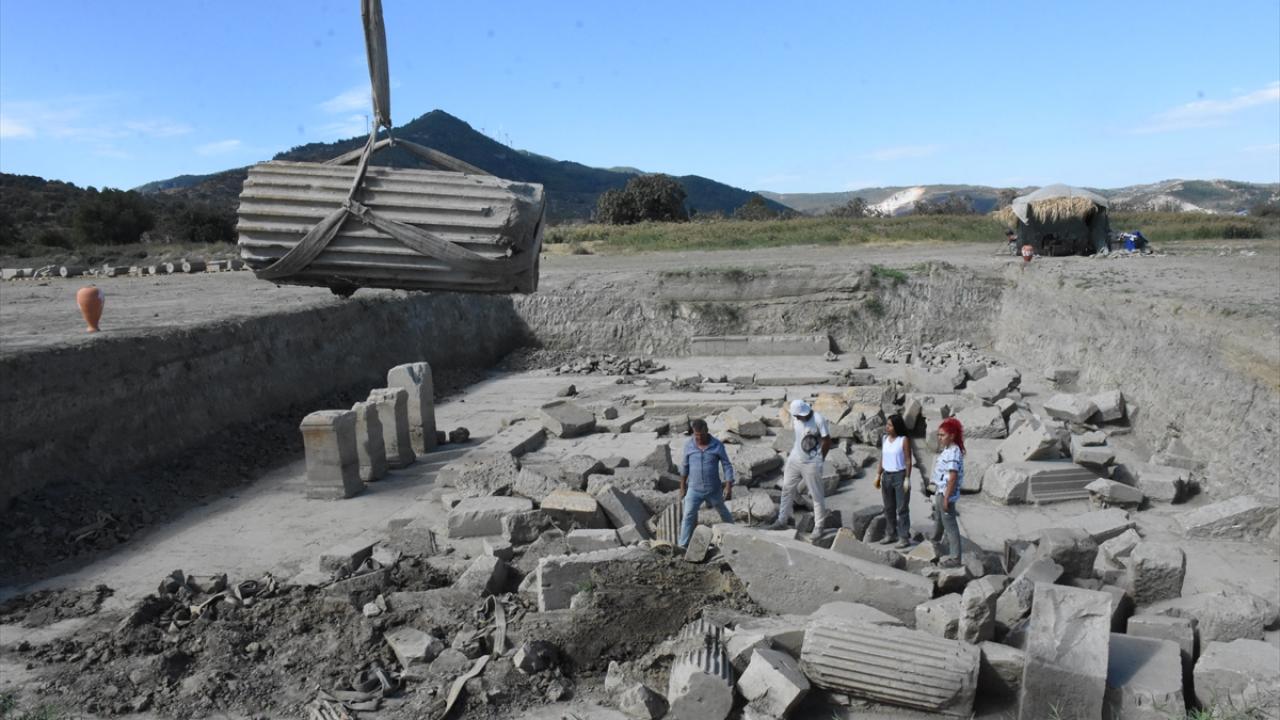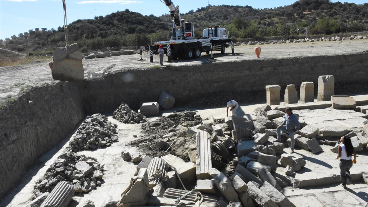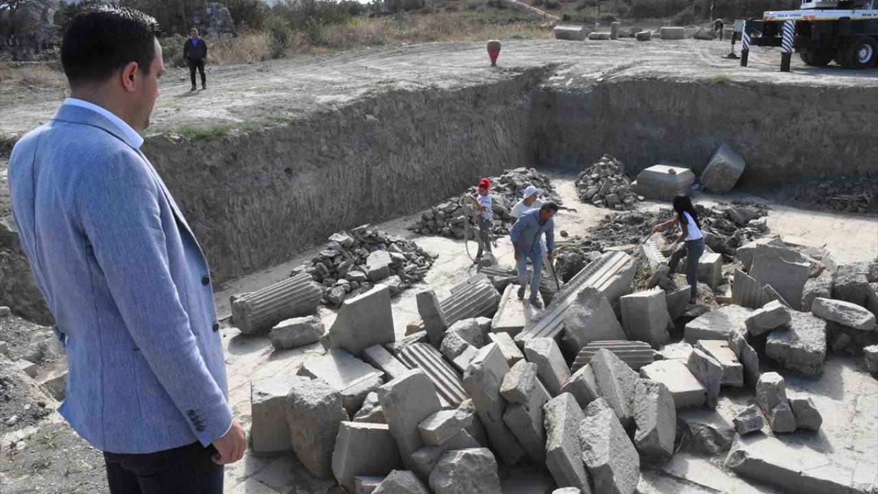 1700 yıllık geçmişe sahip antik kentte bulunan Zeus Tapınağı`nda geçen yıl başlanan kazı çalışmaları ise tamamlandı. 600`e yakın bloğun vinç yardımıyla tek tek özenle çıkarıldığı alanda, büyük sütunların da bulunduğu parçalar tapınağın yanına bırakıldı. Eserler, burada restore edildikten sonra olduğu yerde tapınağın ilk günkü görünümüyle sergilenecek.