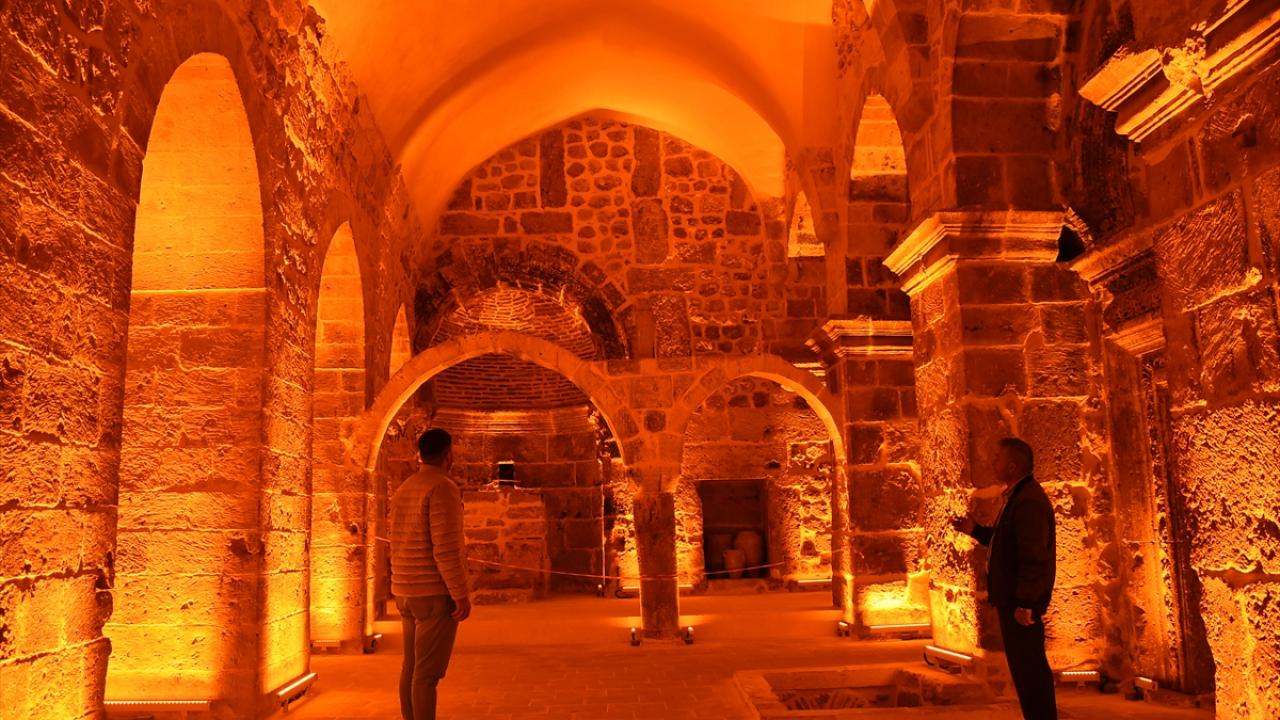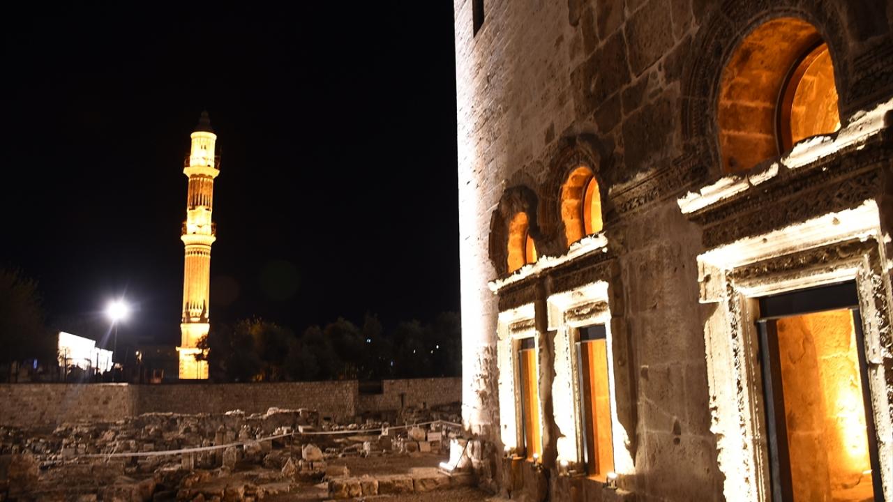 Mardin'in Nusaybin ilçesinde 7 yıl önce UNESCO Dünya Miras Geçici Listesi'ne kabul edilen Kültür İnanç Parkı'ndaki tarihi Zeynel Abidin Camii ve Mor Yakup Kilisesi aydınlatıldı.