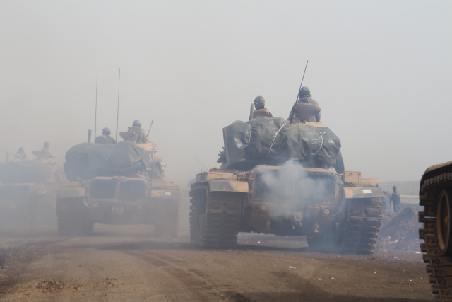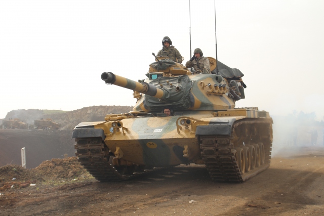 Türk Silahlı Kuvvetleri (TSK), Özgür Suriye Ordusu (ÖSO) ile Zeytin Dalı Harekatında terör örgütü PYD/PKK`nın işgalindeki Afrin`e doğusundaki Azez`den operasyon başlattı.