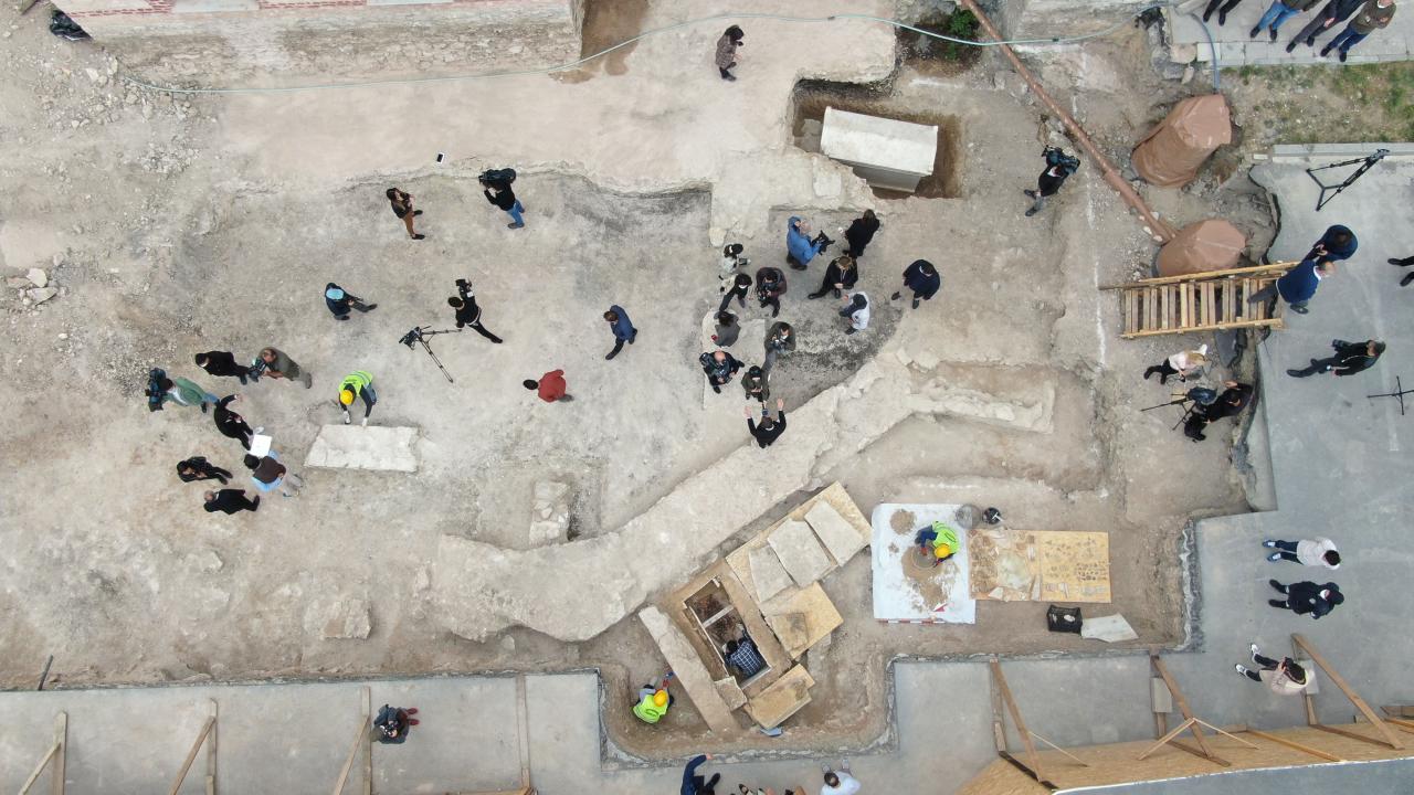 “Bu çalışmalar esnasında bir mozaik parçasına ulaşılmasıyla birlikte belediye konuyu müdürlüğümüze iletti. Daha önce bulunan mozaiklerin restorasyonu yapıldı. Şu an büyük bir bölümü sergilenmekte. Çalışmalarımızı tam sonuçlandıracağımız aşamada bizi çok önemli bir keşif heyecanlandırdı. Bir mermer lahit gömüye rastladık. Bu lahitin üzerinde herhangi bir yazı ve betim tespit edemedik. Ancak kapağı açtığımızda içinde iki iskelet vardı. Biri kadın biri erkekti. İkisinin de dişlerinde hastalık tespit edildi. Erkek bireyin kaburgasının yaşadığı dönemde kırıldığı ve tekrar kaynadığı tespit edildi. Erkek bireyin eklem romatizmasıyla ilgili bir hastalığının olduğu tespit edildi. M.S 5. yüzyıla ait olduğunu söyleyebiliriz. Bir de sandık mezar tespit ettik. Arkadaşlarımız çalışmalarına devam ediyor. Mezarda bir bireye ait iskelet tespit edildi. Bur mezarda da veri oluşturmamıza sağlayacak buluntu elde edilemedi. Bu mezarda en erken 5. yüzyıla ait olduğu düşünüyoruz. Alanda M.S 4. yüzyıla ait sikke ve Orta Bizans Dönemine ait sikke tespit edildi. Bu alanda 4. yüzyıldan 11. yüzyıla kadarki dönemde bir yaşam sürmüş. Çalışmalarımız sonucunda sizlere daha net bilgiler vereceğiz.”
