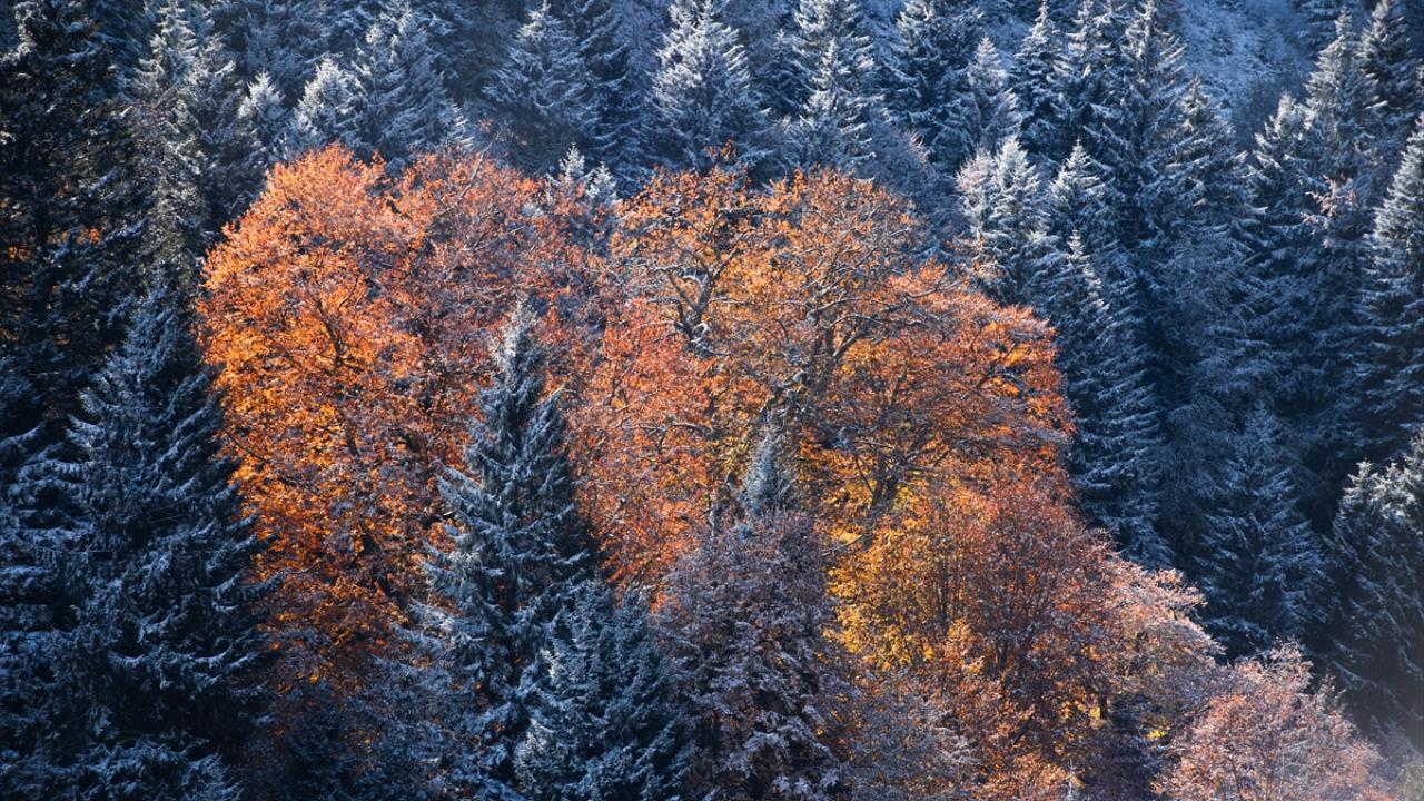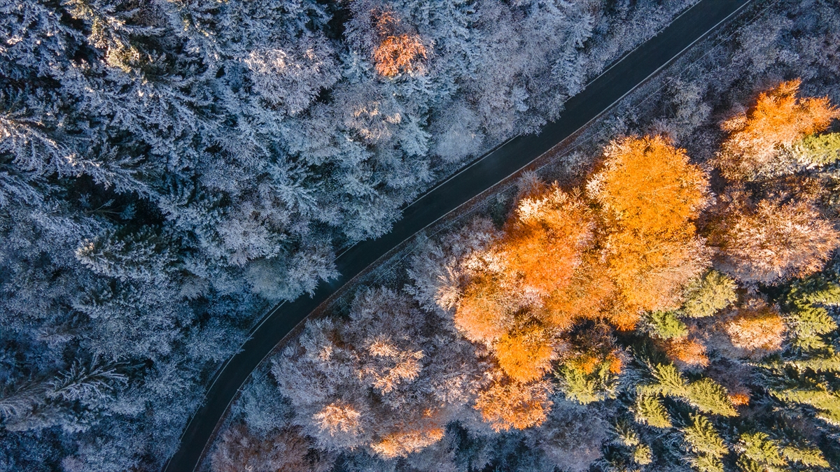 Tarihi İpek Yolu güzergahındaki dağ, bir yanda sarı ve yeşilin tonlarını yansıtan farklı türdeki ağaçları, dökülen sararmış yapraklarıyla, diğer yanda ise karla beyaz bürünen ağaçlarıyla hazan mevsiminin en güzel halini yansıtıyor.
