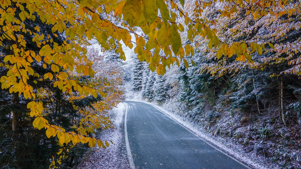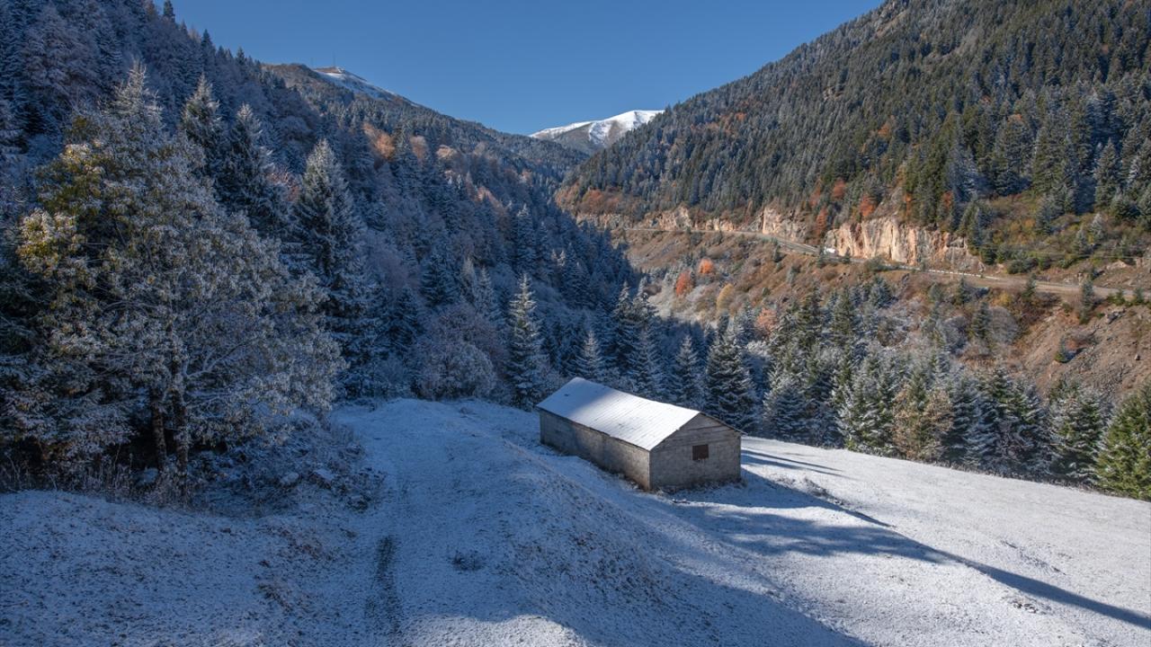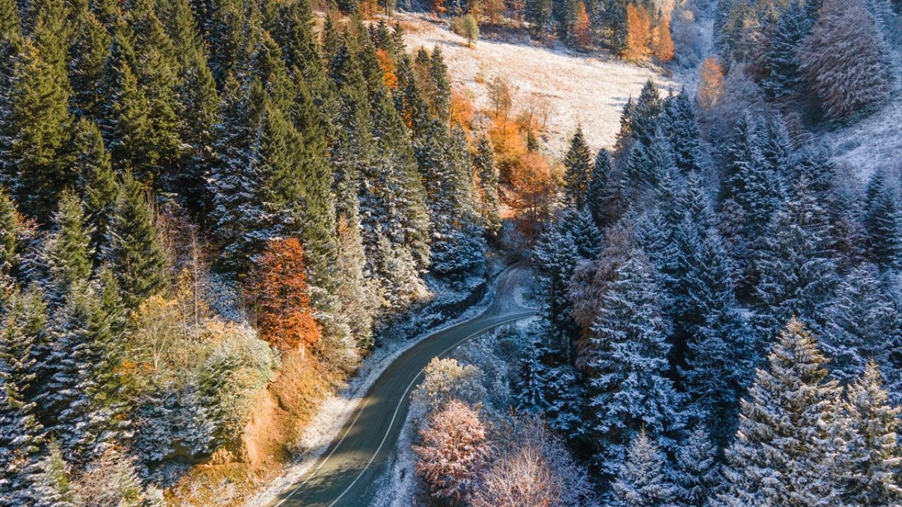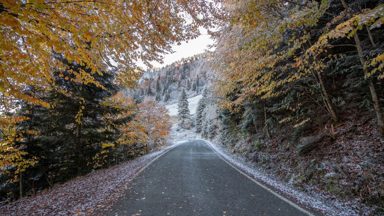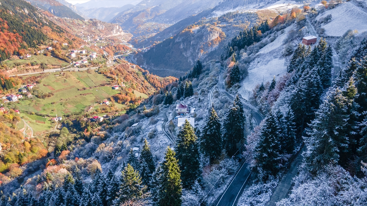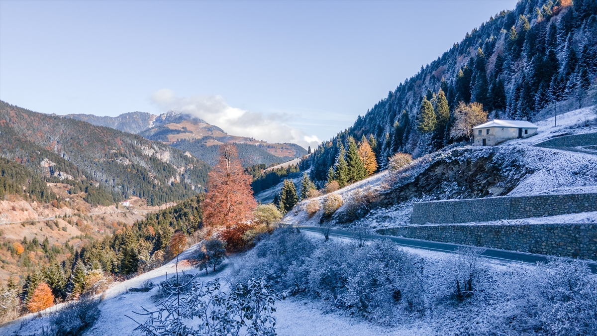 Doğu Karadeniz'i Doğu Anadolu'ya bağlayan önemli kara yolu güzergahlarından Zigana Dağı Geçidi, sonbaharın son günlerinde yağan karla birlikte iki mevsimi bir arada yaşatıyor.