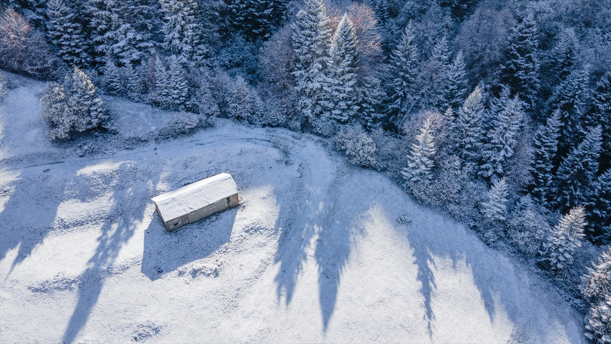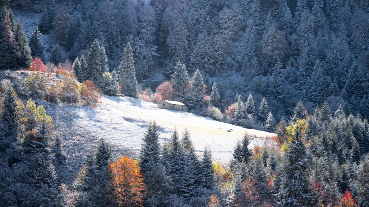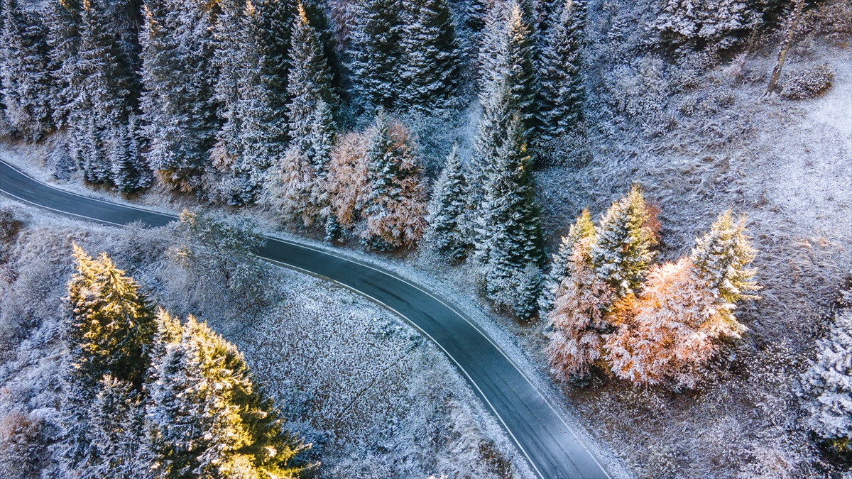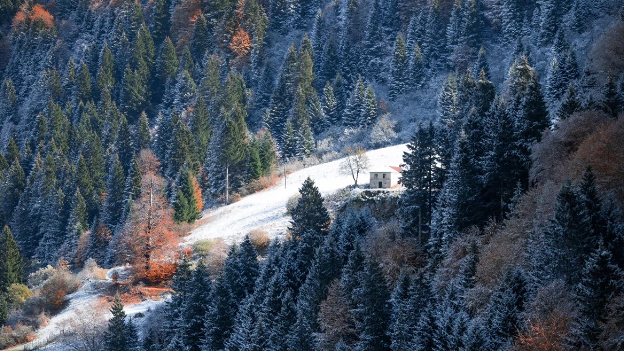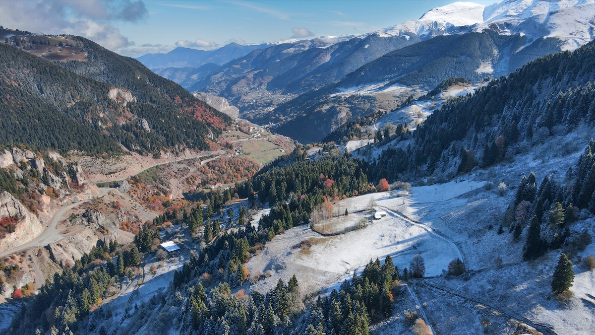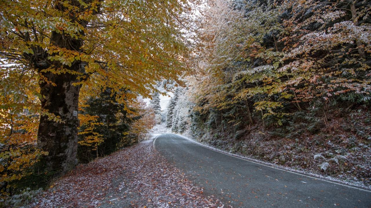 Doğu Karadeniz'i Doğu Anadolu'ya bağlayan önemli kara yolu güzergahlarından Zigana Dağı Geçidi, sonbaharın son günlerinde yağan karla birlikte iki mevsimi bir arada yaşatıyor.