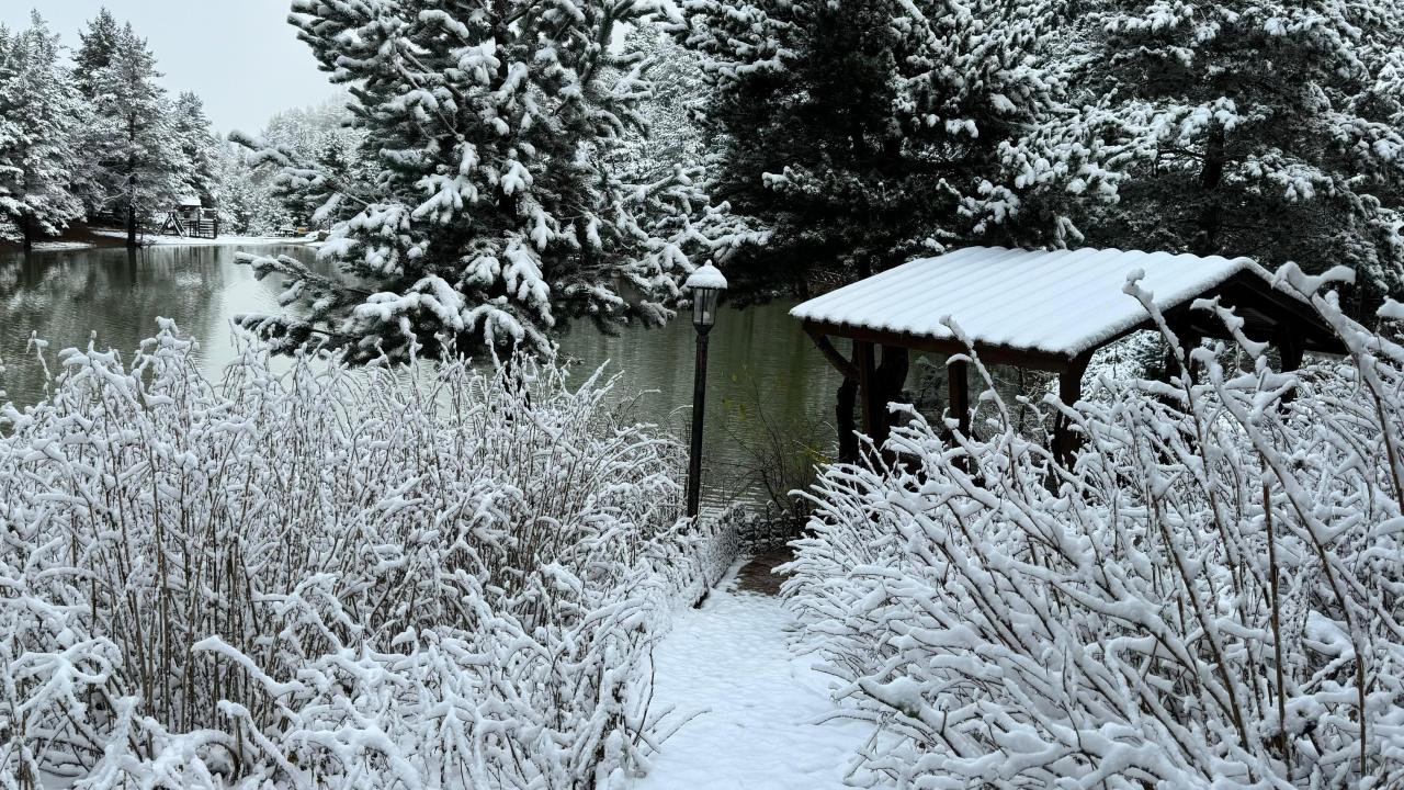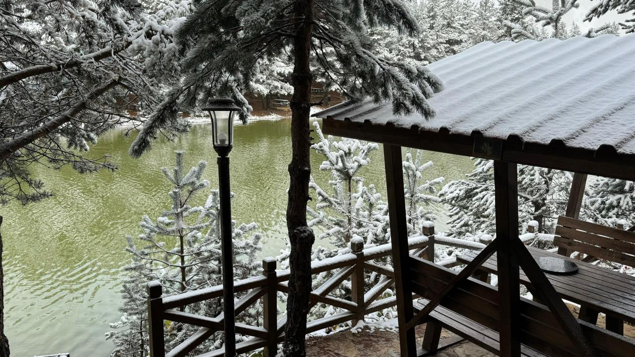 Tesis sorumlularından Oğuzhan Çolak, sabah kalktıklarında bembeyaz bir örtüyle karşılaştıklarını belirterek, “17 Kasım’ın sabahına uyandığımızda Zigana Dağı`nın eteklerinde yer alan Limni Gölü`nde etkili olan kar yağışı nedeniyle mükemmel bir manzarayla karşılaştık.