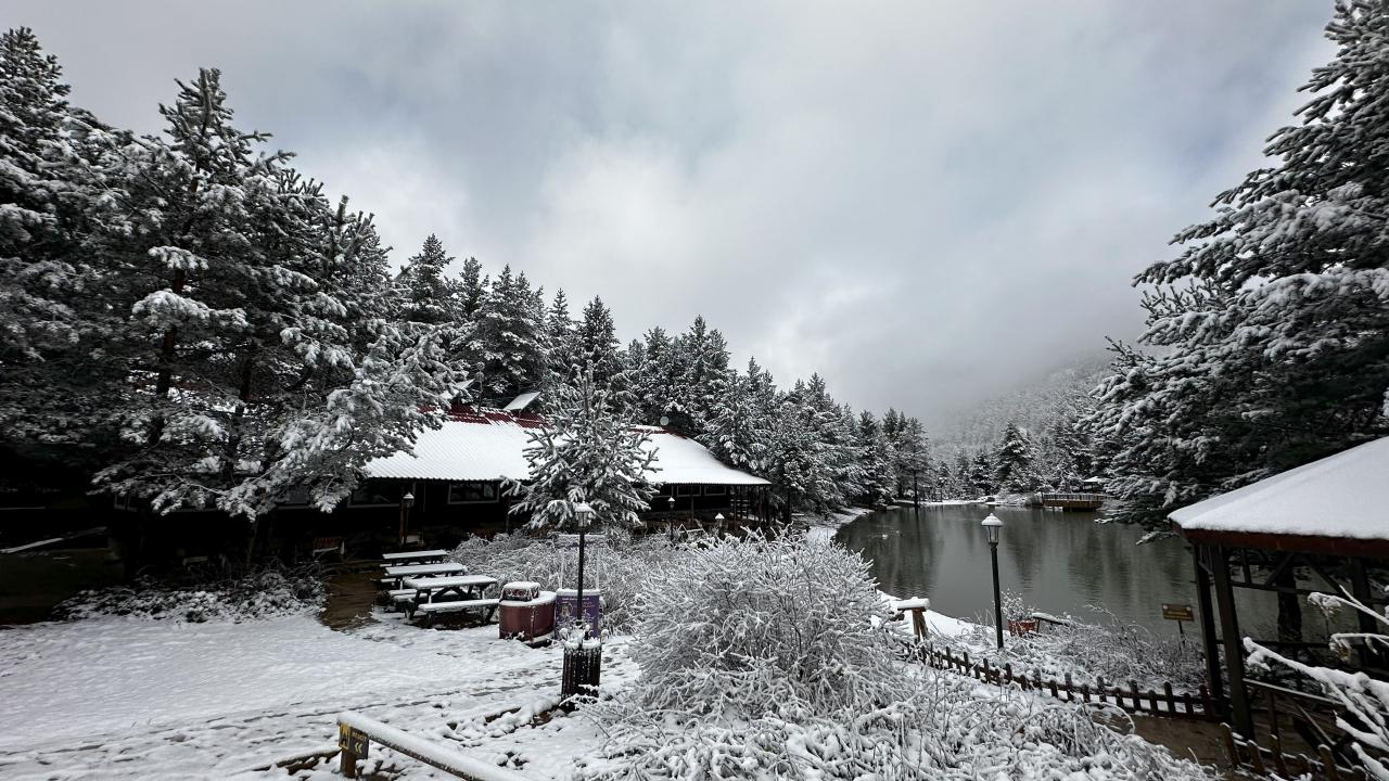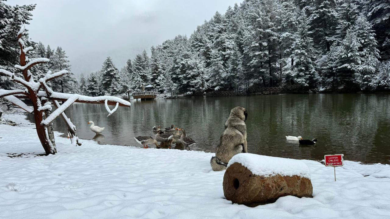 Tarihin her döneminde önemli ve zorlu bir geçit olan Zigana Dağı`nın eteklerinde yer alan ve “Zigana’nın nazar boncuğu” olarak bilinen Limni Gölü Tabiat Parkı, dün gece yağan karla beyaz gelinliğini giydi.