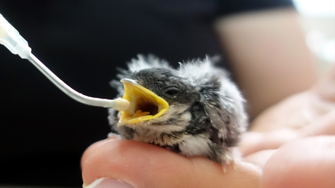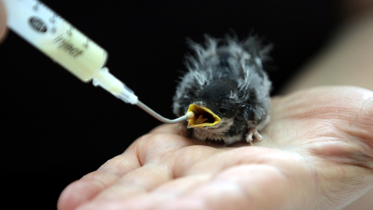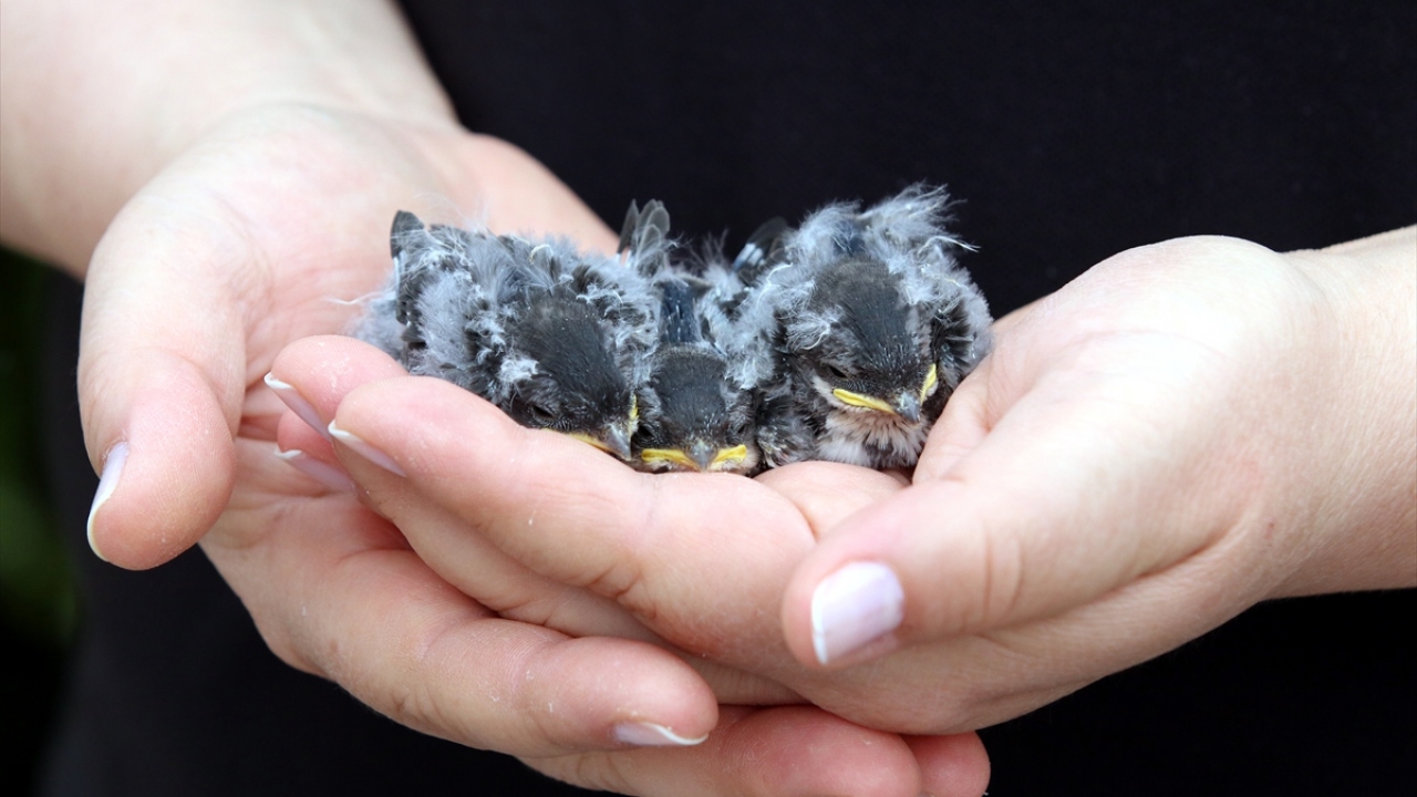 Kırklareli'nde sağanak nedeniyle bir evin duvarındaki yuvalarının yıkılması sonucu yere düşen üç kırlangıç yavrusuna, Doğa Koruma ve Milli Parklar Şubesinde görevli ziraat mühendisi Çiler Yavaş tarafından 'anne şefkati' ile bakılıyor.