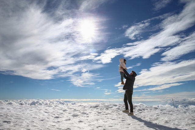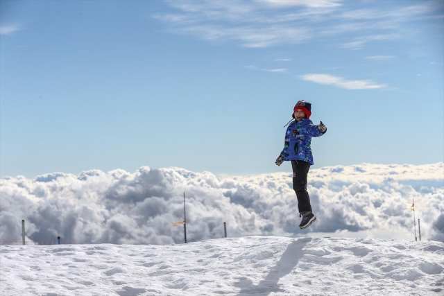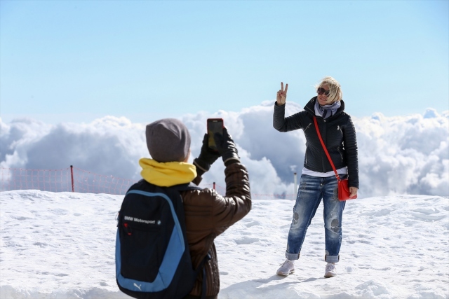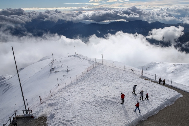 Her yıl milyonlarca turisti ağırlayan dünyanın önemli turizm destinasyonlarından Antalya, konuklarına aynı gün içerisinde dört mevsimi bir arada yaşama imkanı sunuyor. Antalya`nın "pırlanta gerdanlığı" olarak nitelendirilen dünyaca ünlü ve uluslararası ödüllü Konyaaltı Sahili`nde vatandaşlar denize girip, güneşlenirken, aynı gün içerisinde kente yaklaşık bir saat mesafede 2 bin 365 metre yükseklikteki Tahtalı Dağı`nda ise kar keyfi yaşıyor. Teleferikle yaklaşık 10 dakikada çıkılan Tahtalı, zirvesi karlarla kaplı dağlar ve bulutlarla ziyaretçilerine görsel şölen sunuyor. Bir taraftan denizi de görme imkanı bulan ziyaretçiler, bol bol hatıra fotoğrafı çektiriyor.