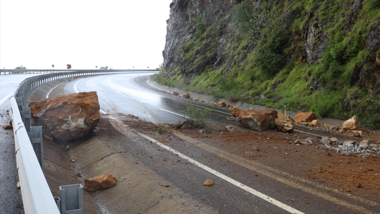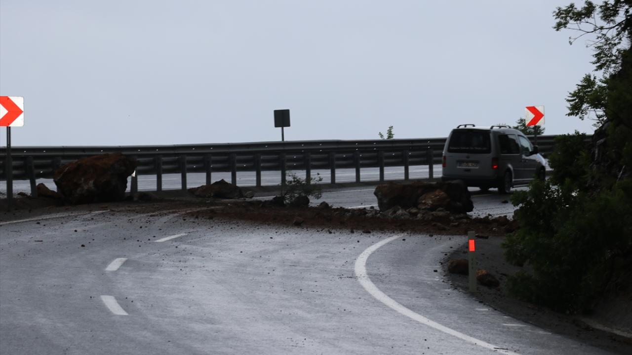 Güvenlik güçleri, büyük kaya ve ağaç parçalarının düştüğü yolu ulaşıma kapattı.
