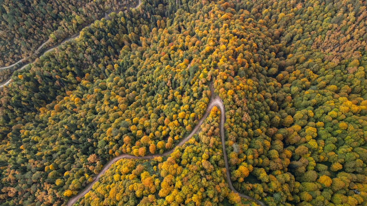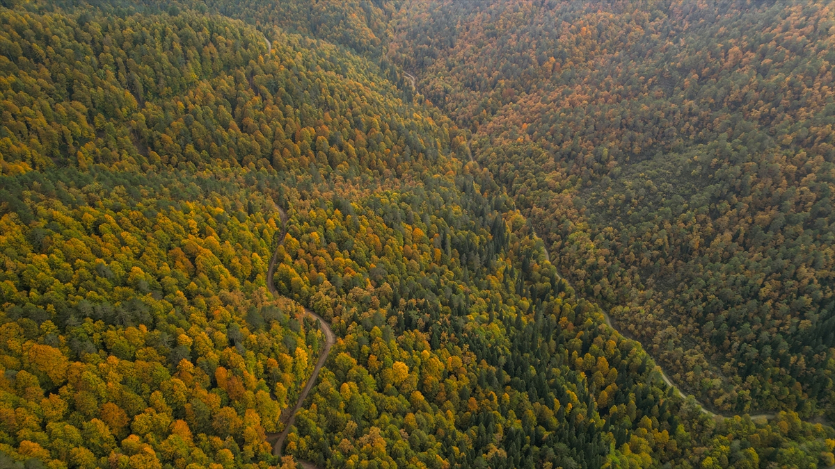 Bölgede sonbahar manzarası dronla görüntülendi.
