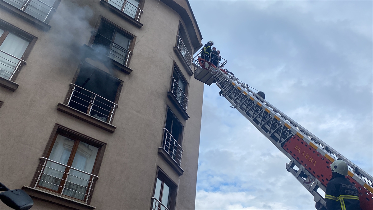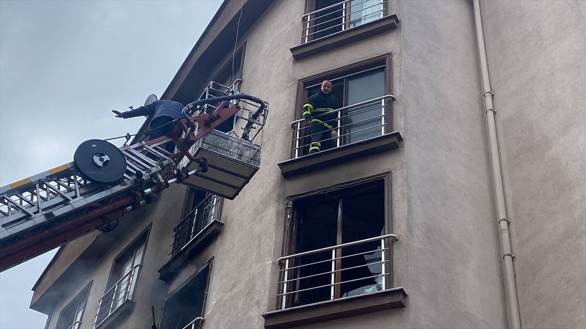 Yangına kısa sürede müdahale eden itfaiye ekipleri, binadaki 15 öğrenciyi merdiven yardımıyla apartmandan tahliye etti.