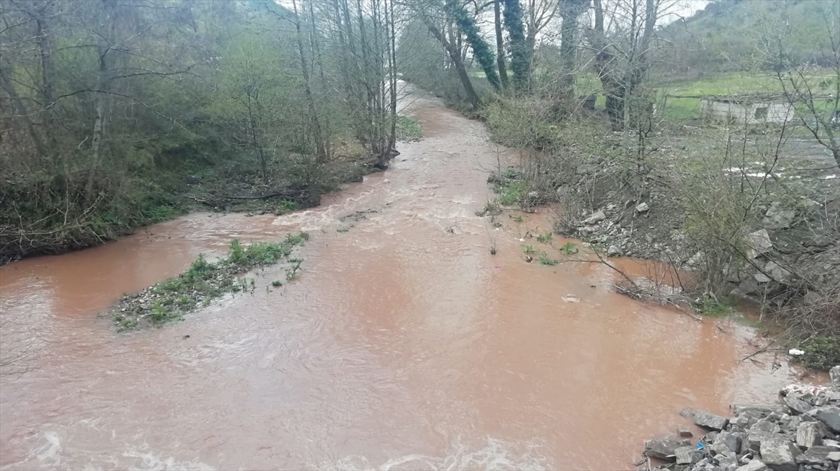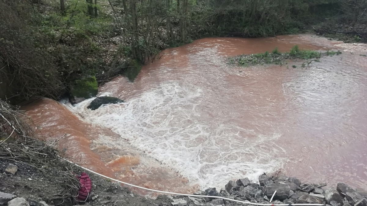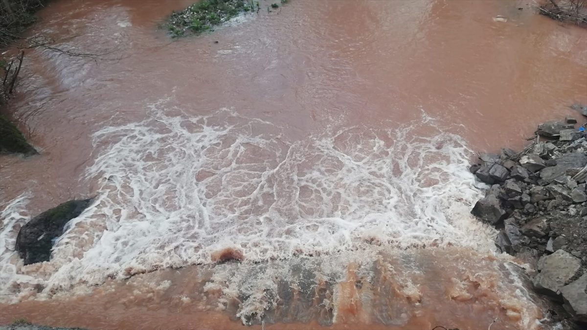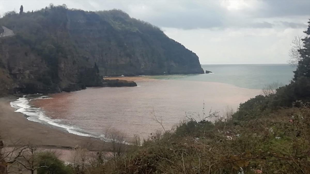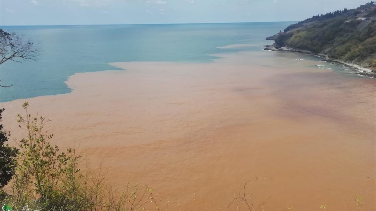 Zonguldak'ın Ereğli ilçesinde dereden Karadeniz'e akan çamurlu su, denizi kahverengiye boyadı.