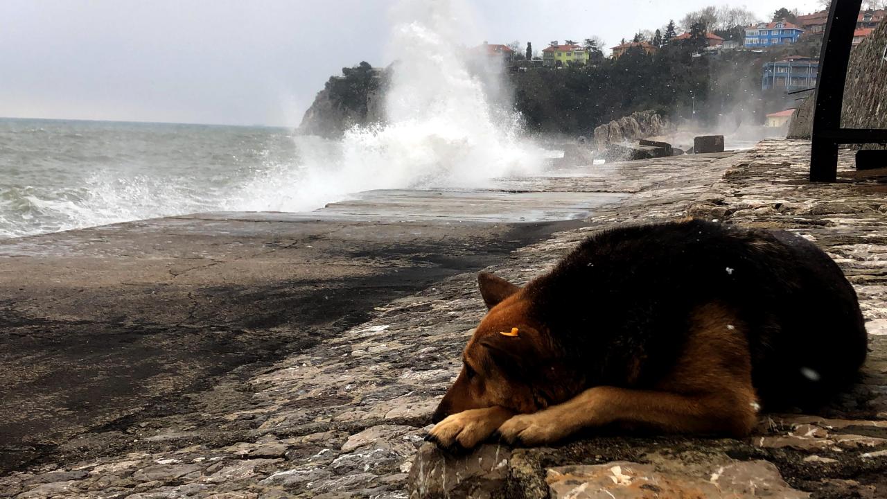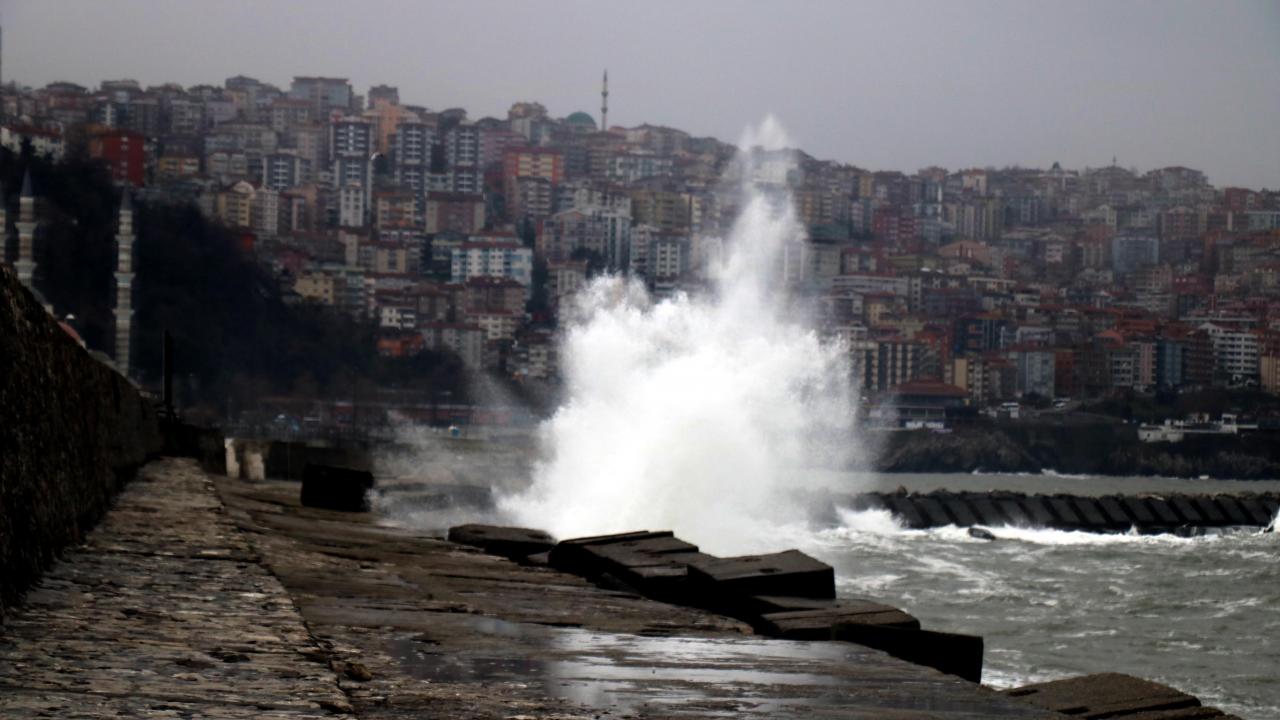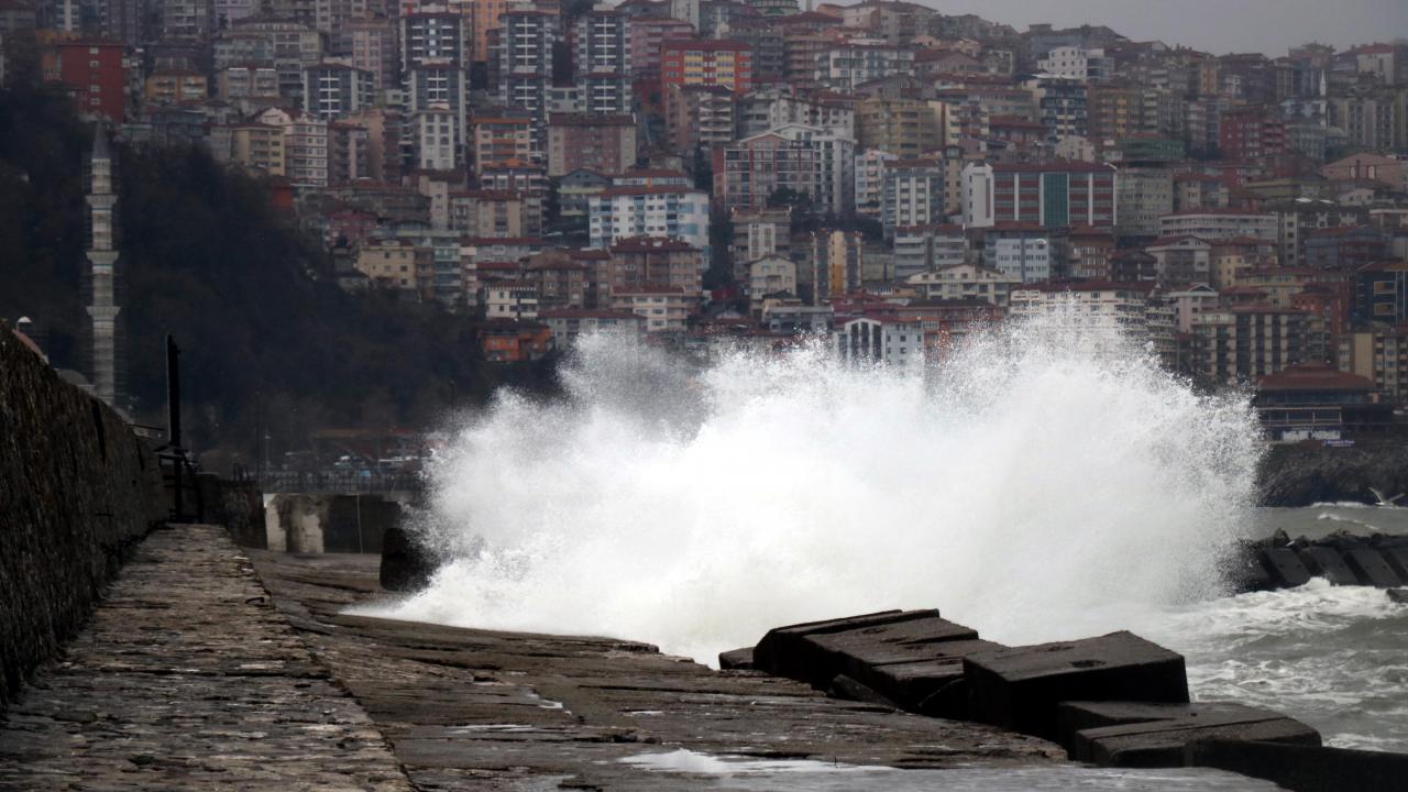 Zonguldak'ta, rüzgar nedeniyle denizde dev dalgalar oluştu. Kayalıklara çarparak yükselen dalgaların boyu 5 metreyi aştı.