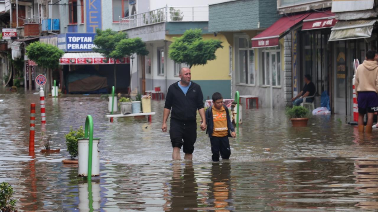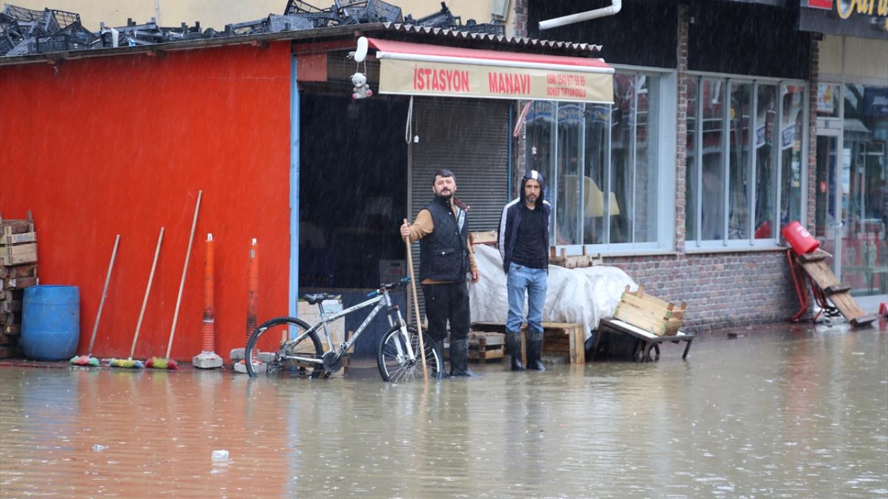 Su birikintileri nedeniyle ilerlemekte güçlük çeken bazı araçlar, vatandaşların yardımıyla bulunduğu yerden kurtarıldı.