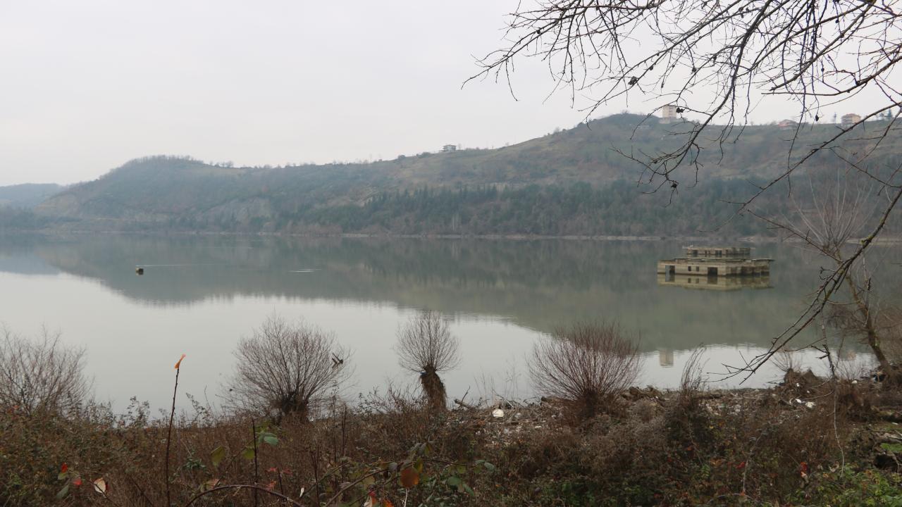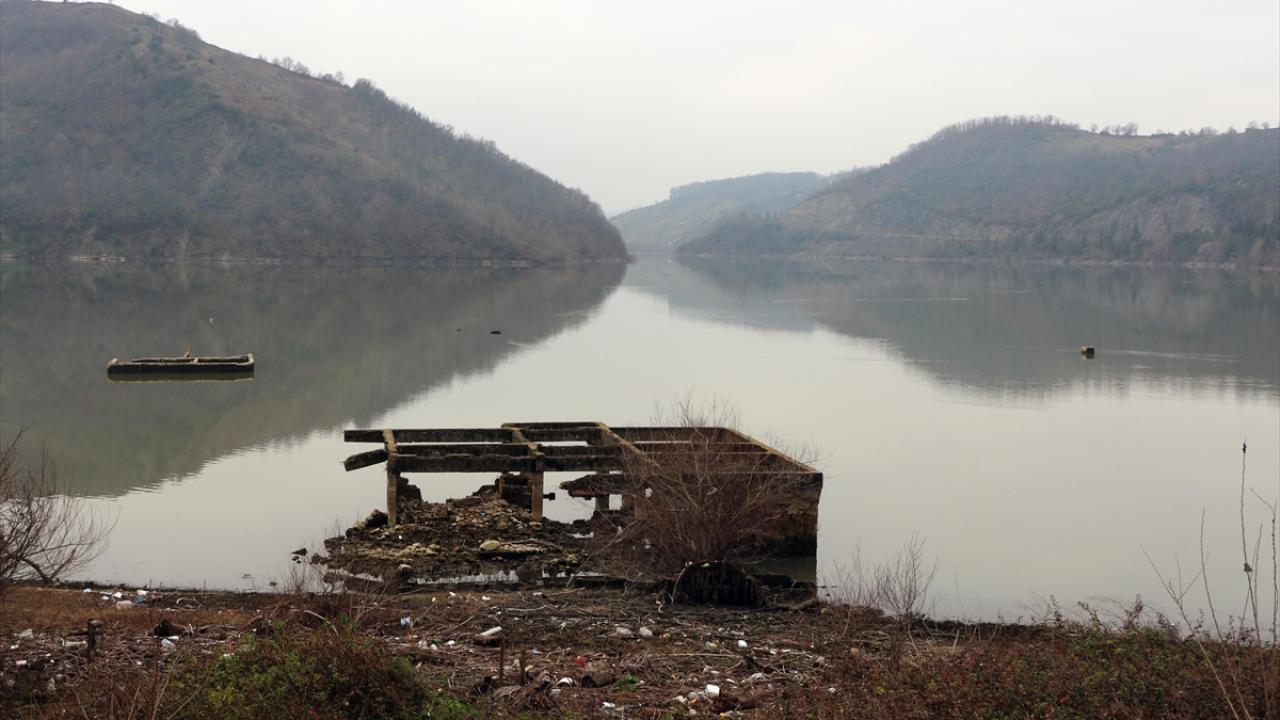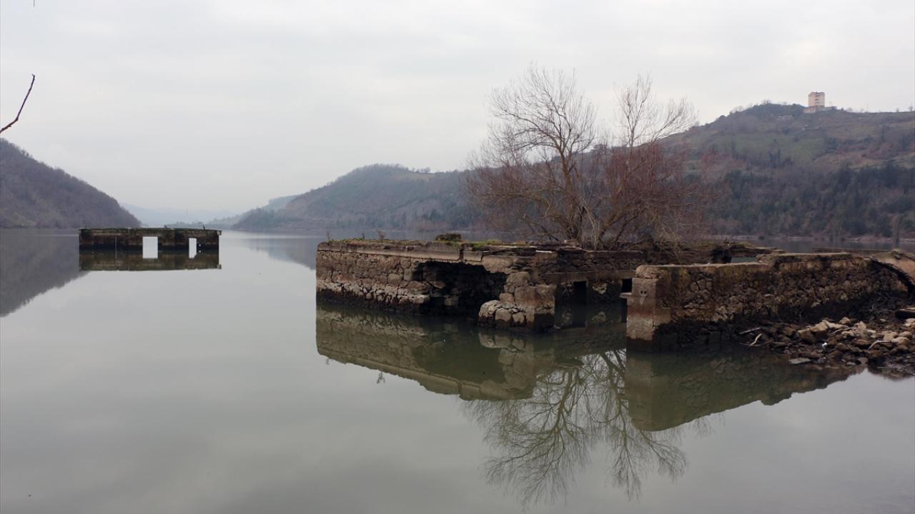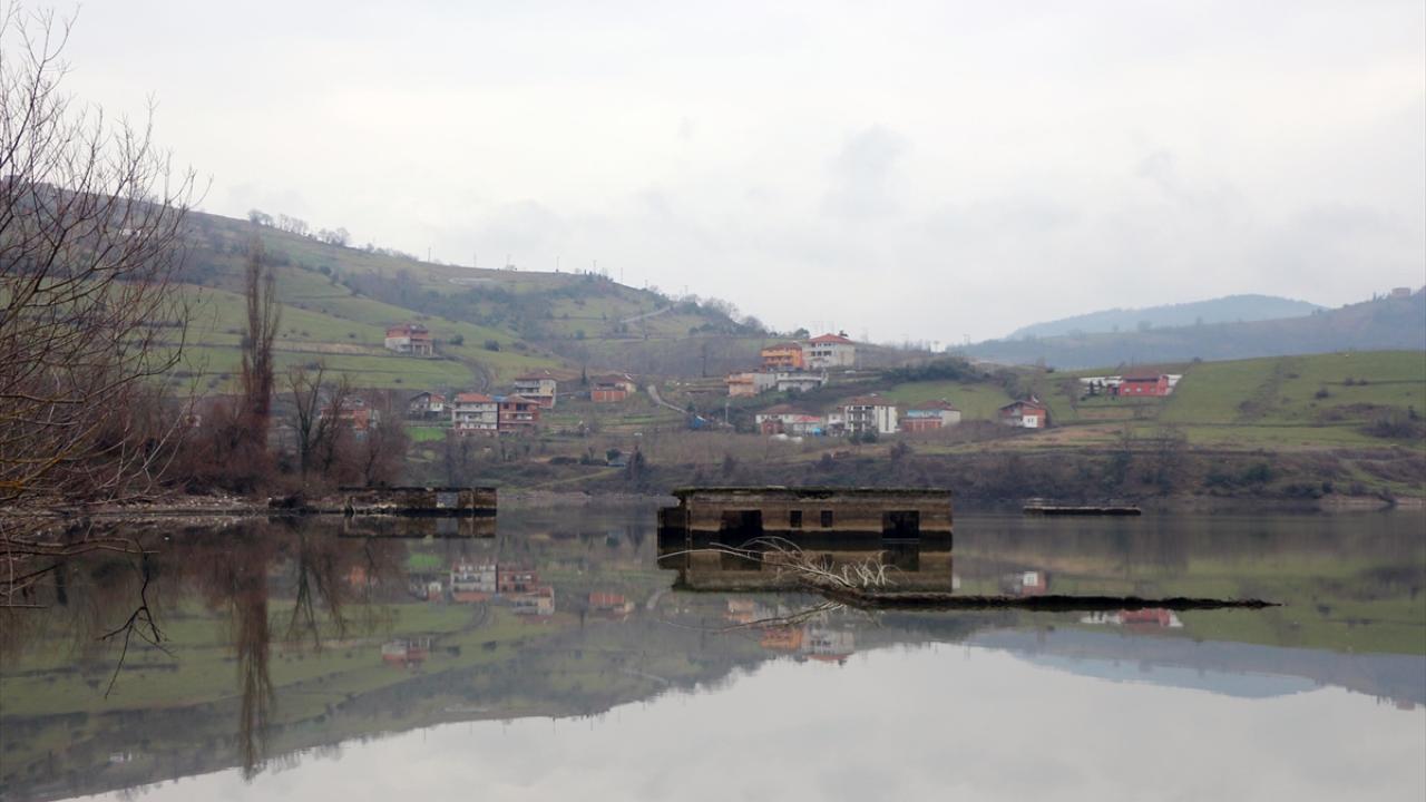 Ova Köyü Kızlar çayı üzerine inşa edilen 36 milyon metreküp kapasiteli barajda, yaklaşık 10 metrelik çekilmenin ardından su altında kalan bazı evler göründü.