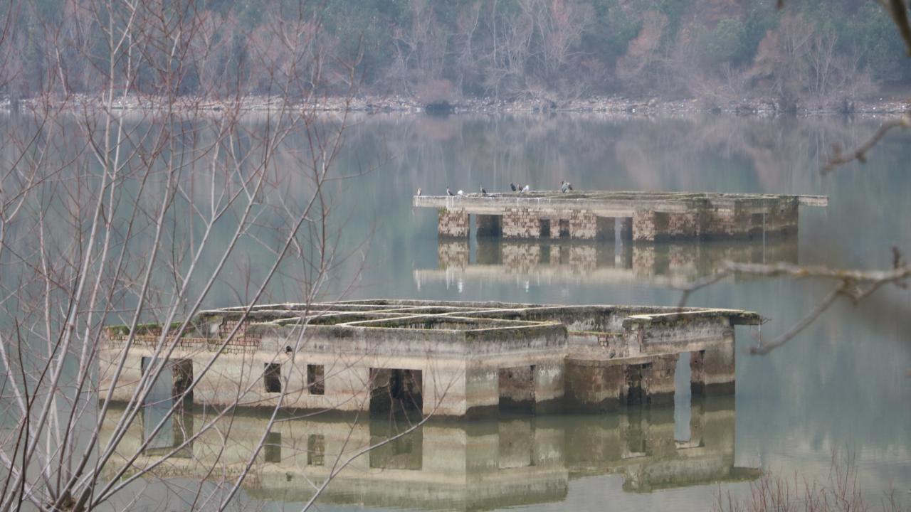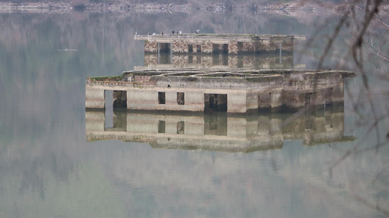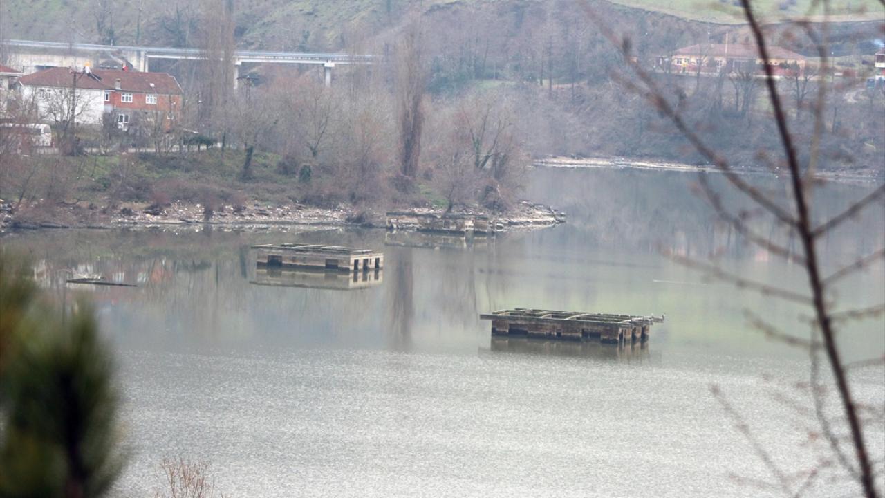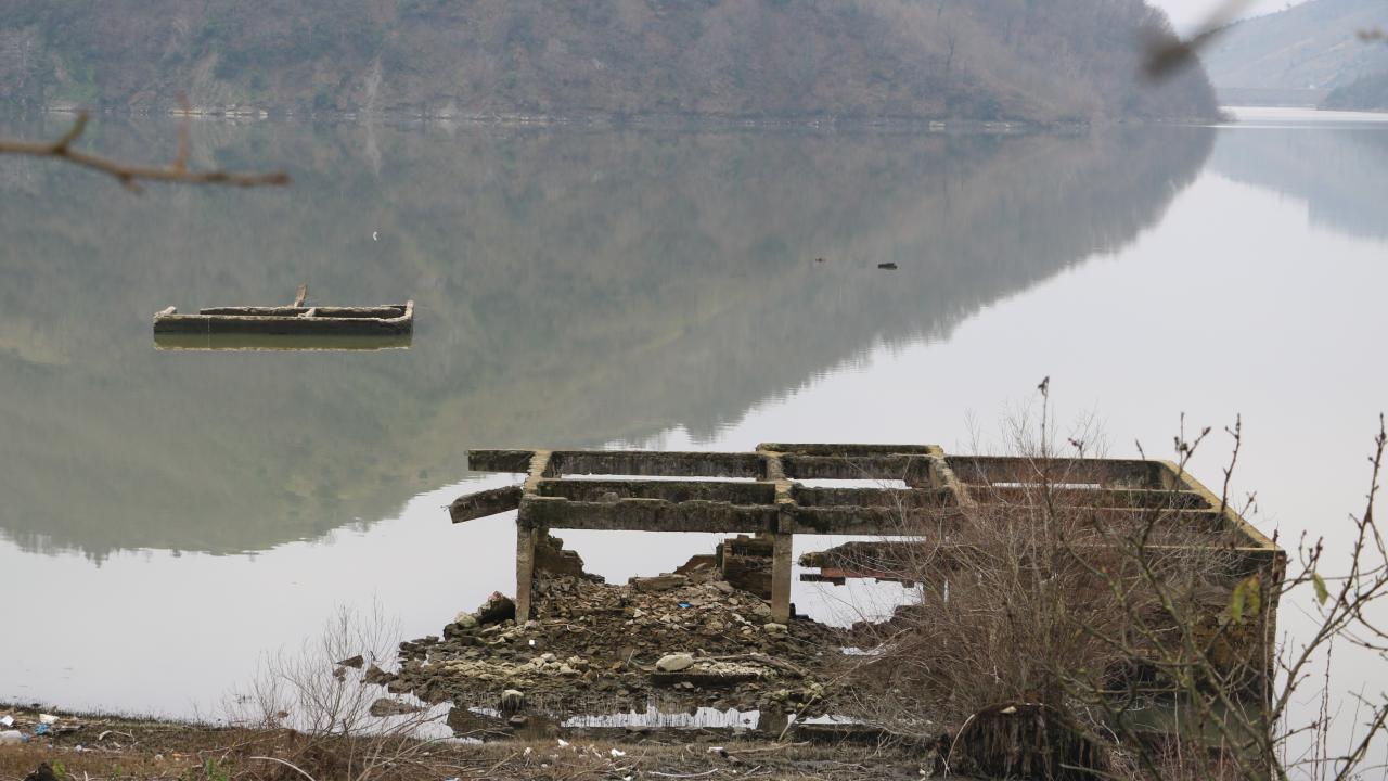 Ova Köyü Kızlar çayı üzerine inşa edilen 36 milyon metreküp kapasiteli barajda, yaklaşık 10 metrelik çekilmenin ardından su altında kalan bazı evler göründü.