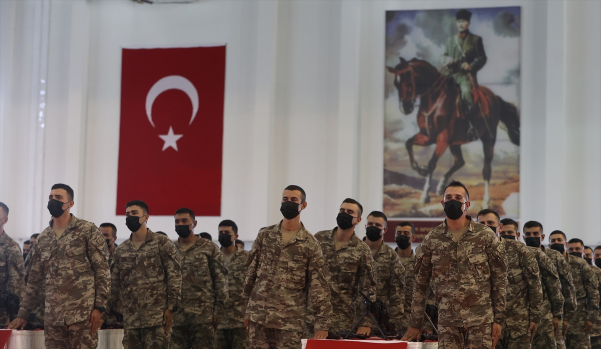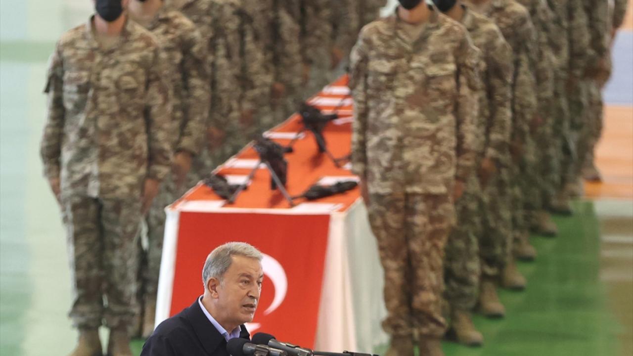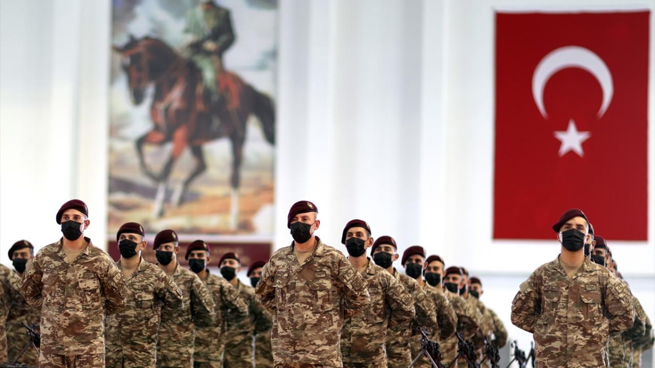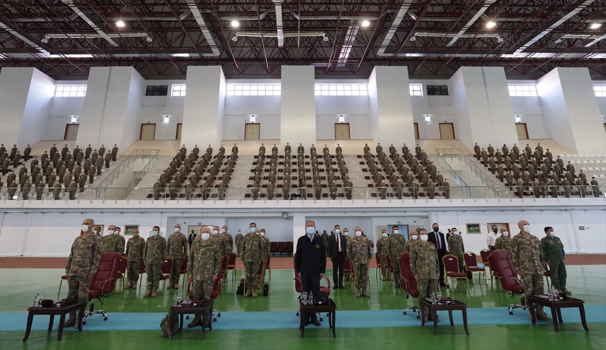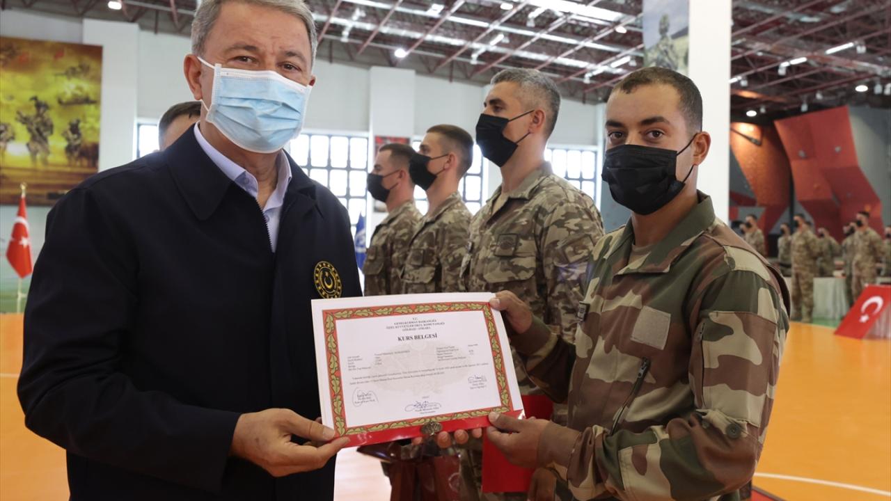 Dereceye girenlerle Libya`dan gelen misafir askeri personelin brövelerinin Akar ve Komutanlar tarafından takılmasının ardından diğer kursiyer yapılan yemininin ardından bordo berelerini giydi.