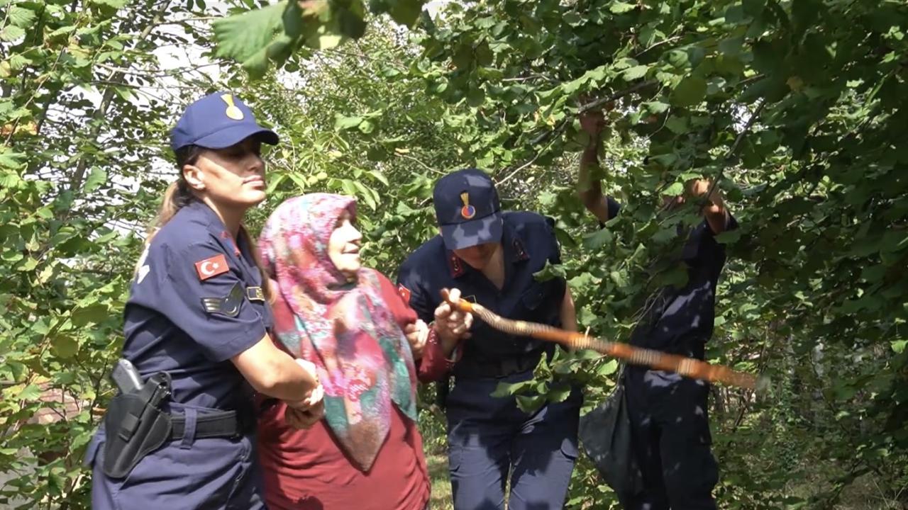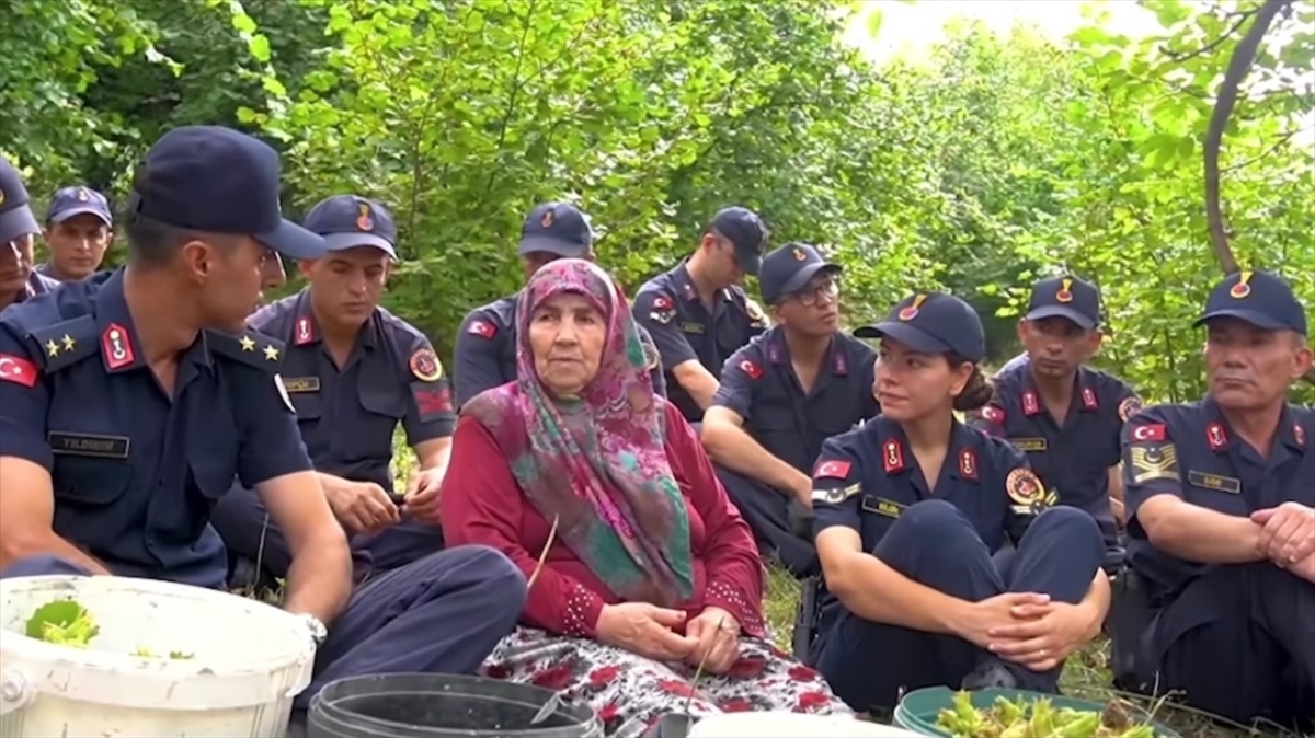 Ziyarette Zühre ninenin bahçesindeki fındıkları toplayabilecek kimsesi olmadığını öğrenen jandarma ekipleri, harekete geçti.