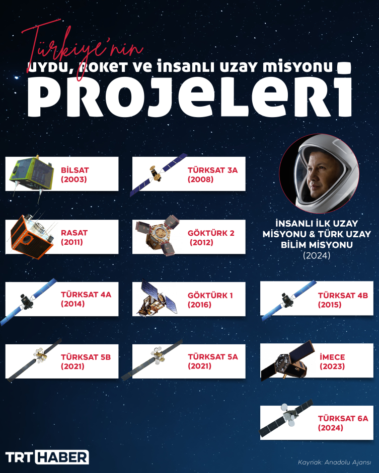 Türkiye'nin uydu, roket ve insanlı uzay misyonu projelerini paylaşan Kacır, proje isimlerini şöyle sıraladı: