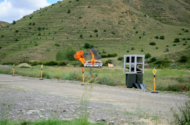 Test atışlarında 100 metreden içerisinde el yapımı patlayıcı düzeneği bulunan minibüs vuruldu.