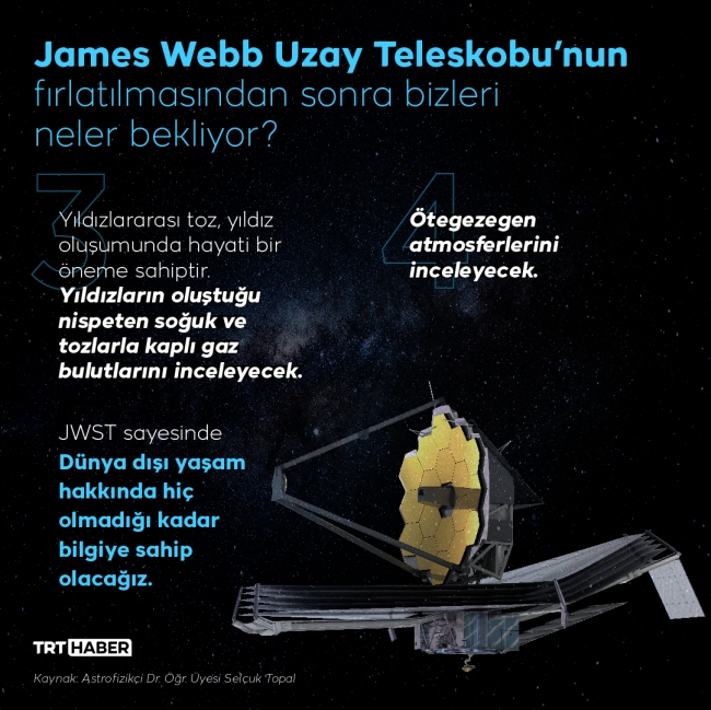 [Grafik: TRT Haber / M. Furkan Terzi]“JWST sayesinde Dünya dışı yaşam hakkında hiç olmadığı kadar bilgiye sahip olacağız.”