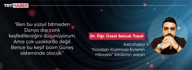 “Ben bu yüzyıl bitmeden Dünya dışı canlı keşfedileceğini düşünüyorum.” diyen Kaostan Kozmosa Evrenin Hikayesi kitabının yazarı Astrofizikçi Dr. Öğr. Üyesi Selçuk Topal, TRT Haber’in konuya dair sorularını yanıtladı.
