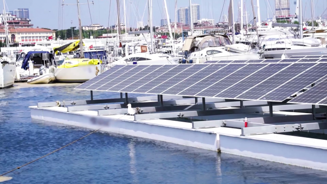 [Pendik'teki marinaya kurulu yüzer GES ülkemizin enerji üretiminde yeni bir dönemin habericisi olabilir.]