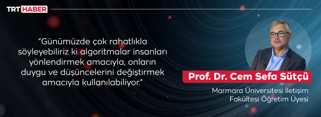Sütçü, “Dolayısıyla biz diyebiliriz ki evet gerçekten böyle bir durum var. Algoritmalar insanları yönlendirmek amacıyla kullanılıyor. Hatta algokrasi diye bir tanım da getiriyorlar bu duruma. Yani, demokrasinin algoritmalar tarafından yönetildiği diye bir ifade” diyor.
