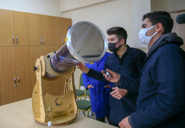 Okulda uzay ve astronomiye meraklı Tesisat Teknolojisi ve İklimlendirme alanı 11. sınıf öğrencisi Batuhan Laçinoğlu ve Berat Serhat Daşkın, geçen yıl kasımda, TEKNOFEST'e katılabilmek adına öğretmenleri Murat Yılmaz ile teleskop üretmek için kolları sıvadı.