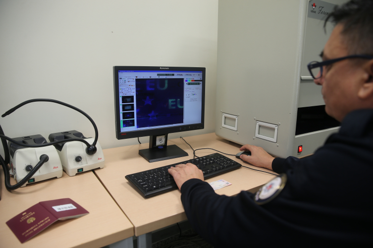Belgelerde kullanılan malzemenin kalitesiyle kod ve yazılımların önemli olduğunu belirten Dağ, "Belgelerde gözle tespit edilebilen güvenlik özellikleri varken insan gözünün tespit edemediği durumlar da oluyor. Bu durumda belgeyi 10 kat büyütebilen cihazla, sahte belgelerin tespitini yapmaya çalışıyoruz" dedi.