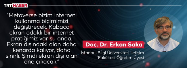 Doç. Dr. Saka, şu an ekran odaklı bir internet pratiğimiz olduğunu söylüyor ve “Metaverse interneti kullanma biçimimizi değiştirecek” diyor.