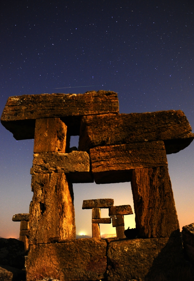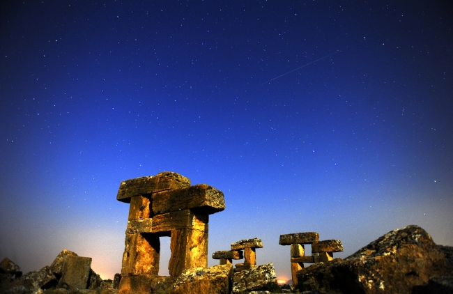 Halk arasında "yıldız kayması" olarak bilinen göktaşı yağmurunun en yoğun olanlarından Perseid, Uşak'ta Blandus antik kentindeki tarihi yapılarda gözlendi.