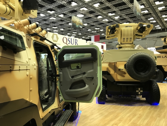 Araçlar, üzerinde yer alan ASELSAN'ın Tanksavar Füze Atıcı Sistemi ve IGLA Füzesi Fırlatma Sistemi ile fuarda Katar'a ayrılan salonda sergilendi.