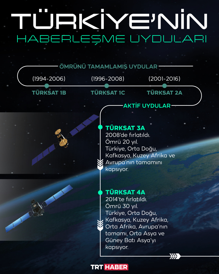 1994-2006 yılları arasında hizmet veren TÜRKSAT 1B’nin ardından, 1996 yılında TÜRKSAT 1C hizmete başlamış ve 2008’e kadar hizmette kalmıştı. TÜRKSAT 2A ise 2001-2016 yılları arasında haberleşme uydusu olarak hizmet verdi. Bu 3 uydu artık ömrünü tamamladı.