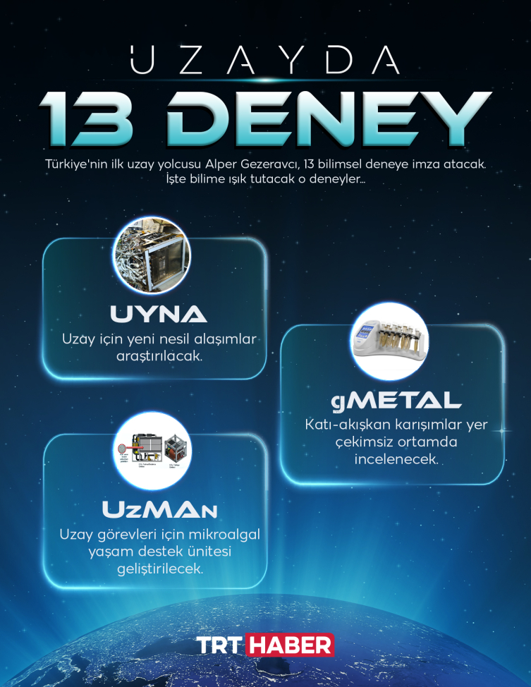 Türkiye'nin ilk astronotu Alper Gezeravcı, 14 gün boyunca Uluslararası Uzay İstasyonu'nda 13 deney yapacak.