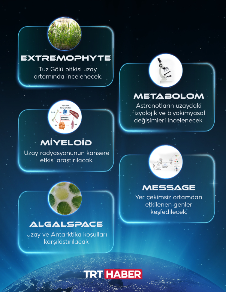 Bu deneyler, mikro yer çekimi ve uzay ortamında insan genetiği, insan sağlığı, biyoloji gibi alanlarda olacak.