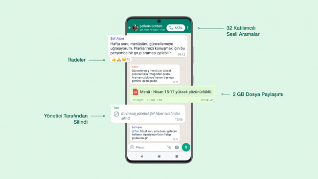 Grup yöneticileri uygun olmayan veya sorunlu mesajları herkesin sohbetinden silebilecek.