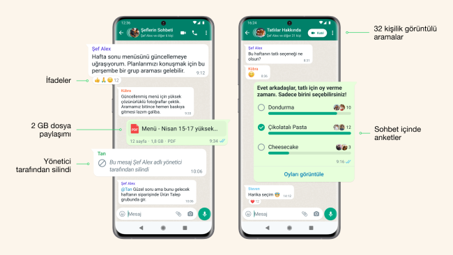 Buna ek olarak WhatsApp, Grupları ve Topluluklar’ı daha da güçlendirecek yeni özelliklerin de yakın dönemde kullanıma sunulacağını açıkladı.