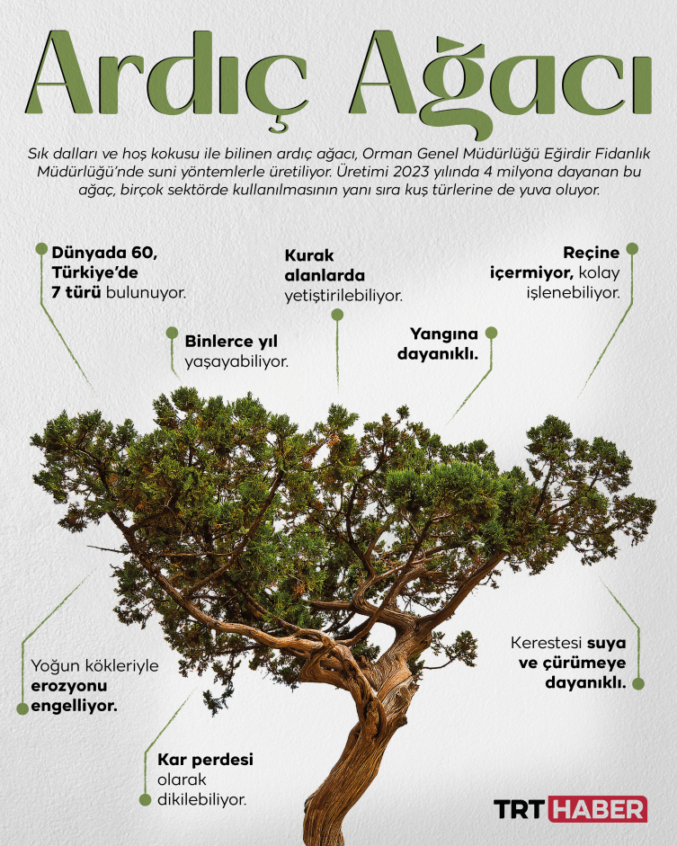 Anadolu’da ‘anıt ağaç’ statüsünde binlerce yıllık ardıç ağaçları bulunuyor. Kuraklığa dayanıklı olması nedeniyle ağaçlandırma çalışmalarının da gözdesi.