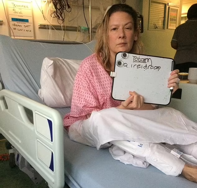 Bir süre hastanede yatan talihsiz kadın, konuşmakta güçlük çekiyor ve söylemek istediklerini beyaz bir tahtaya yazıyordu.
