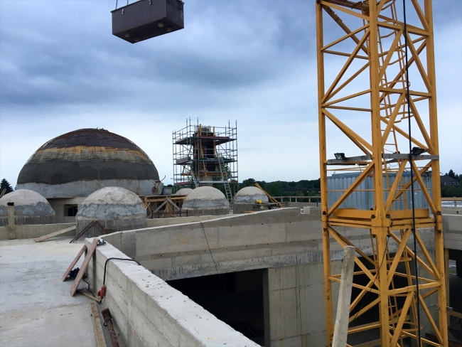 Selçuklu ile Osmanlı mimarisinden izler taşıyan ve biri büyük, altısı küçük olmak üzere toplam 7 kubbesi bulunan Brühl Camii’nin inşaatı hızla devam ediyor.