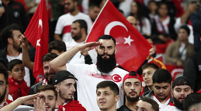 [Fotoğraf: AA]Ay yıldızlı oyuncular, Kaan Ayhan'ın 81'inci dakikadaki golü sonrası yine asker selamıyla sevinç yaşadı. Türkiye, Fransa'ya beraberlik golünü attıktan sonra ve maç bitiminde asker selamı verdi ama Fransa rejisi ekranlara getirmedi.