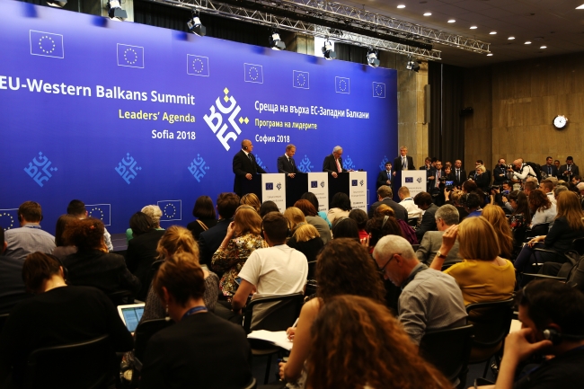 Avrupa Birliği-Batı Balkanlar Zirvesi'nin ardından AB Dönem Başkanı Bulgaristan Başbakanı Boyko Borisov, Avrupa Birliği Konseyi Başkanı Donald Tusk ve AB Komisyonu Başkanı Jean-Claude Juncker, ortak basın toplantısı düzenledi.
