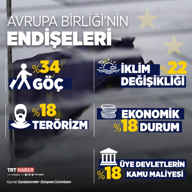 Göç ise hala AB’nin başlıca kaygısı. 2018 sonbaharından bu yana 6 puanlık düşüşe rağmen yüzde 34 ile en çok endişe edilen konuların başında geliyor.