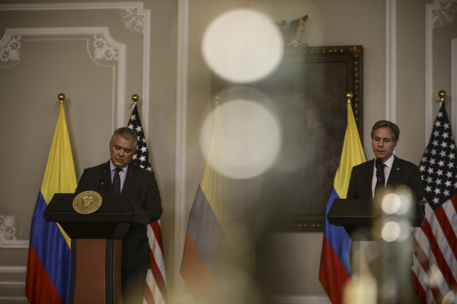 Baş başa ve heyetler arası görüşmenin ardından Duque ile Blinken ortak basın toplantısı düzenledi.