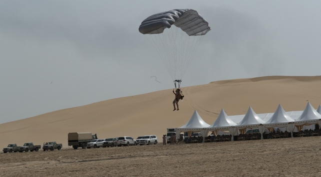 Katar Savunma Bakanlığına bağlı Manevi Rehberlik Müdürlüğünden yapılan açıklamada, iki ülke arasında başkent Doha'da bir gün süren ortak tatbikat çerçevesinde Katar ve ABD'den paraşütçülerin serbest atlayışlar gerçekleştirdiği duyuruldu.