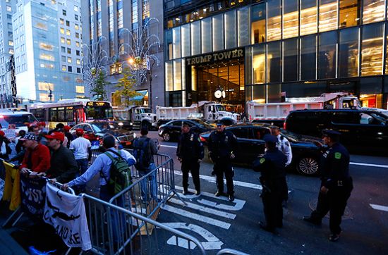 Cumhuriyetçi Parti'nin başkan adayı Donald Trump'ın seçim konuşması yapacağı Midtown Hilton'un önüne de içi kum dolu kamyonların çekilmesi dikkat çekti.
