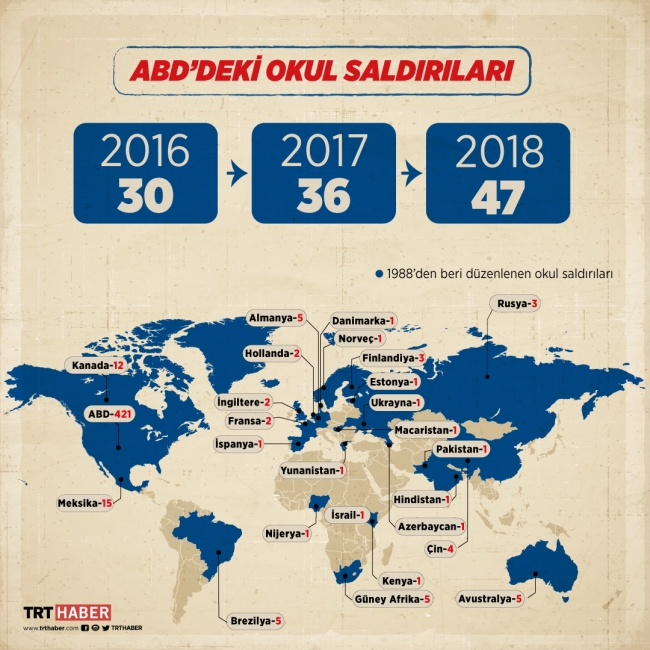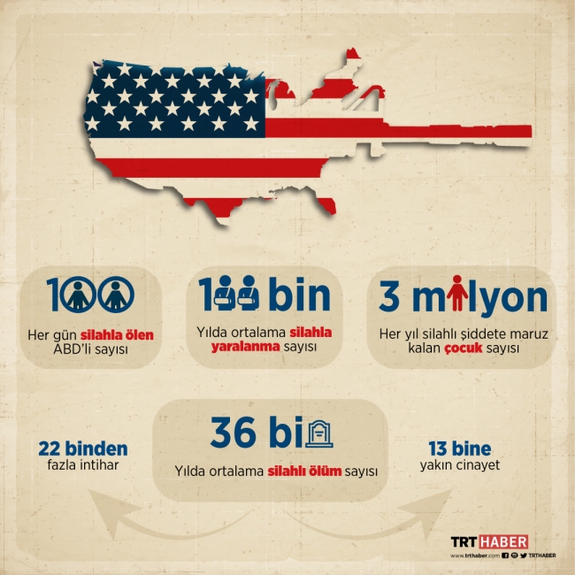 Her eyaletin kendine ait silah satışını düzenleyen yasalarının olduğu ABD’de, son 50 yılda silahla ölenlerin sayısı savaşta ölenleri geçmiş durumda. Okullarda, sokakta, kolay erişilebilen bu silahları kullanmaktan çekinilmiyor.