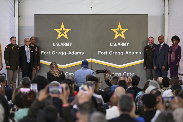 ABD Ordusu Kıdemli Komutanı Tümgeneral Mark Simerly, yaptığı açıklamada, "Tesisimizin yeni adaşları olarak Teğmen General Arthur Gregg ve Yarbay Charity Adams'a sahip olmaktan büyük onur duyuyoruz" ifadesini kullandı.