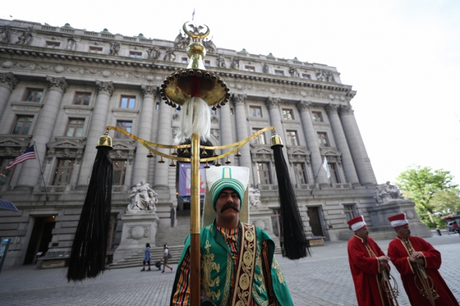 ABD'nin New York kentinde Türk bayrağının göndere çekilmesinin ardından Türk Silahlı Kuvvetleri (TSK) Mehteran Birliği gösteri sundu ve mehter konseri verdi.