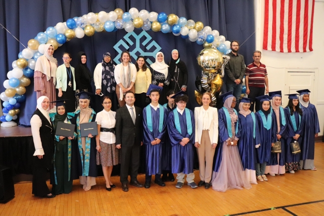 ABD'deki Türkiye Maarif Okulunda düzenlenen törene, New York Eğitim Ataşesi Yurdagül Aydoğan, Maarif Okulu yöneticileri, öğretmenler ve öğrenciler katıldı.